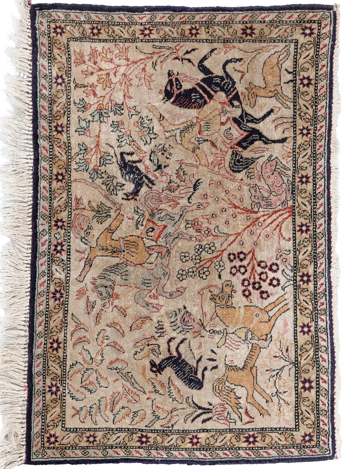 Coming Soon... HUNTER'S DREAM | Collectable Vintage Luxurious Silk Persian Qum with Iconic Hunting Scene | ~ 2 x 3