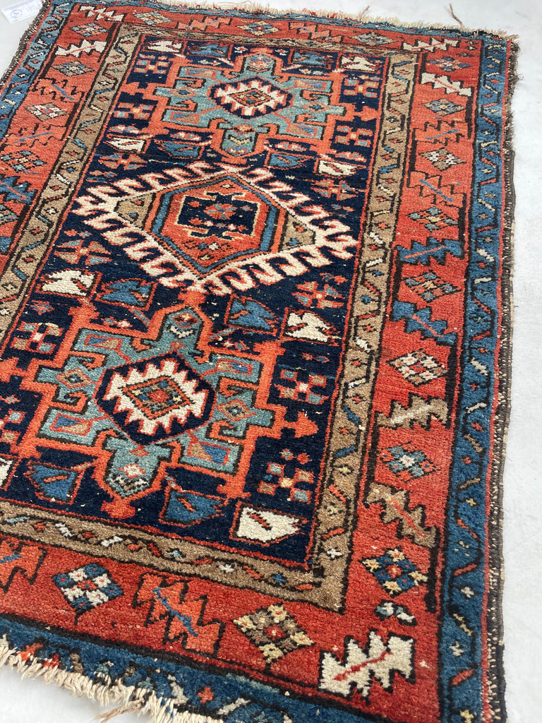 SOLD | DROP DEAD GORGEOUS Antique Karaja | Glowing Terracotta, Deep Ink, Seafoam Green, Camel | 3.5 x 4.3