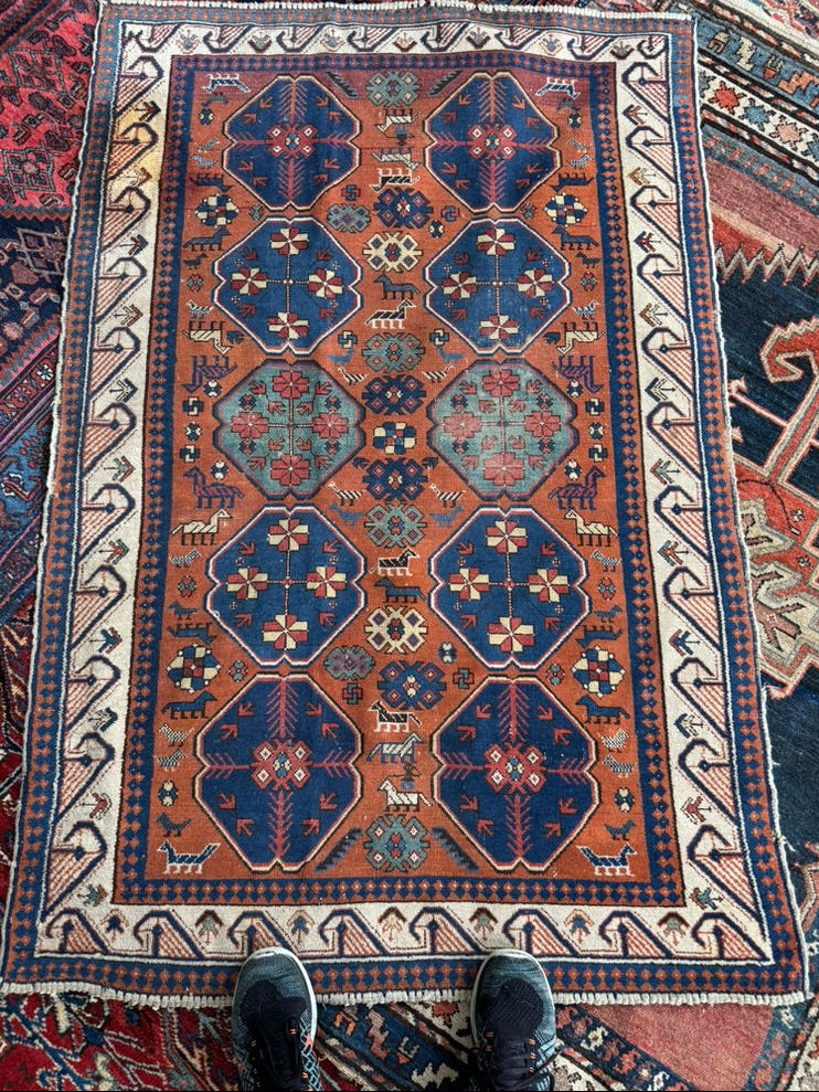 A note from us to you: Buying a rug is special; it's not just you finding the rug, but also the rug finding you. Think about the many coincidences that have to occur for you to find the rug of your dreams. Our rugs are woven by nomads in the villages and remote mountainous regions of the major rug weaving districts across the world. All of our rugs are genuinely old and one-of-a-kind. Like anything old and unique, they are filled with character, soul, and story. The story of a rug is something we think about a lot; who was the weaver(s)? Did they weave it for personal use, commerce, to gift, or trade? Who was the second owner, and the third!? Sometimes the little motifs and symbols in rugs can help tell the story, but we will never truly know - there's something beautiful about that. Alas, our joy is to curate these incredible pieces that speak to us, and to pass them along to their new owners to be enjoyed and cherished for many years to come; both continuing to add to the story of the rug, and to the story of the new owners.