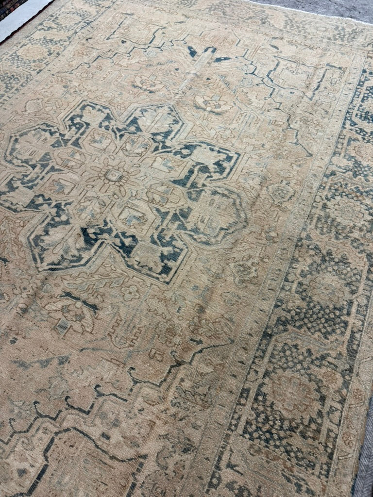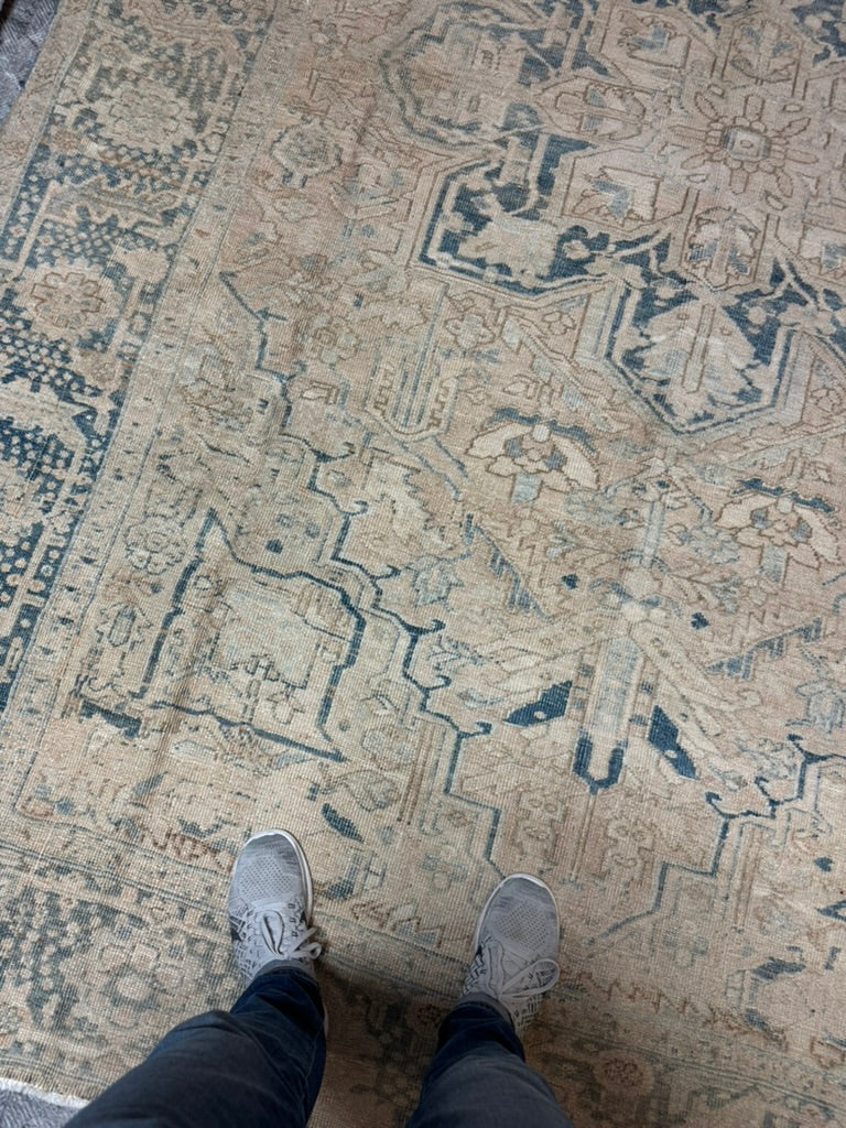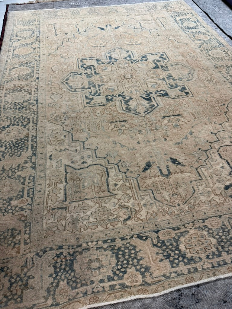 MELLOW Buttery-Ivory Heriz with Pale Indigo Blue and Lovely Muted Ice and Linen Highlights | 8.3 x 11.3
