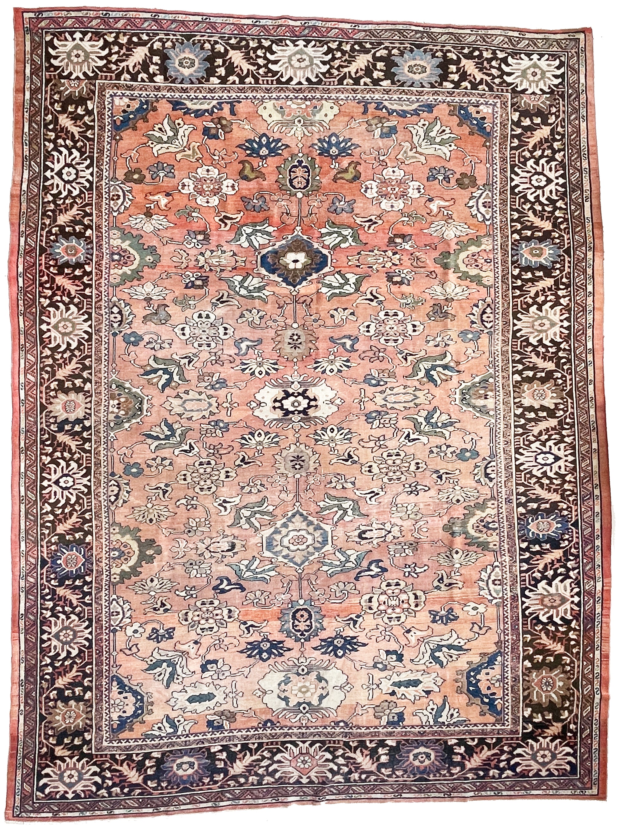SOLD | MAGNIFICENT Antique Mahal with Naive Botanical Drawing | Truly Gorgeous Hues with Muted Apricot, Terracotta, Salmon, Clay, Rust | ~ 10.5 x 14