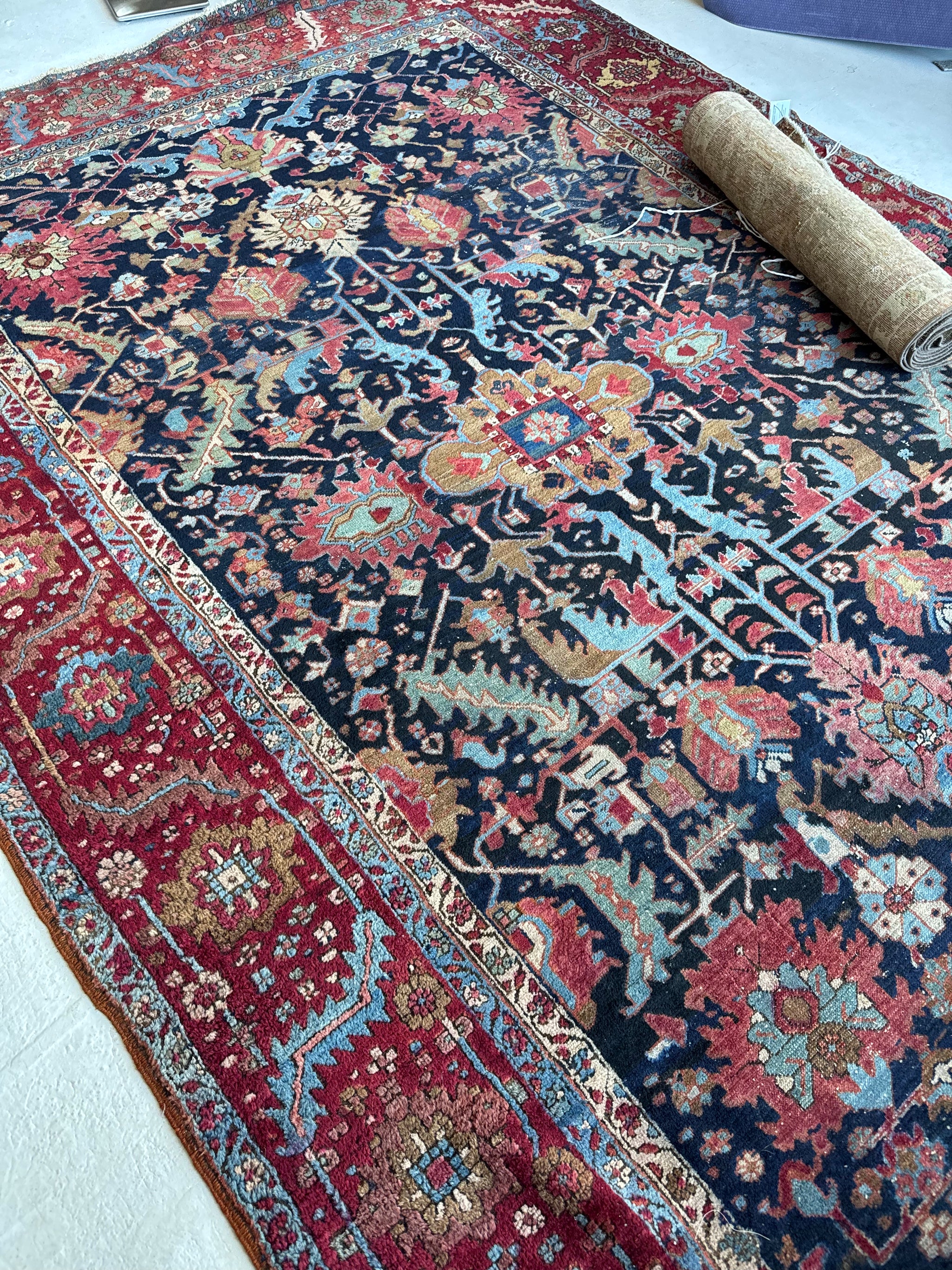 COMPLEX INDIGO HERIZ | Mesmerizing Camel Hair & Sage Green Highlights, Marbling PAINTED Antique Heriz | 8 x 12
