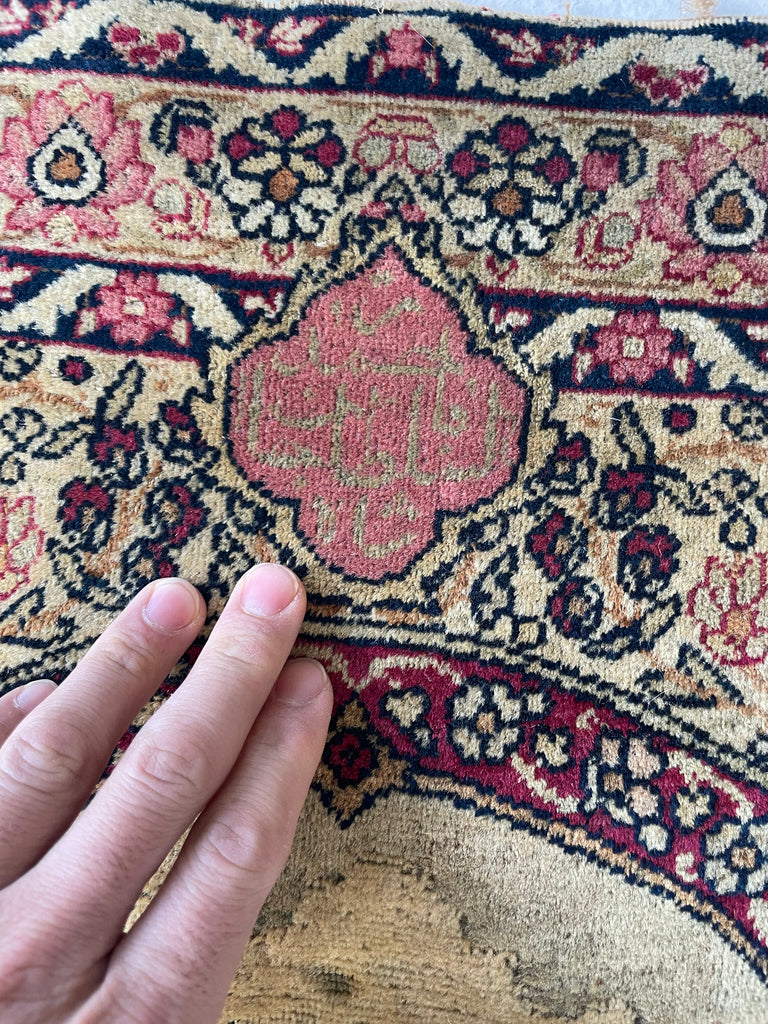 RESERVED FOR DAVID*** The BANKSY OF RUGS | Antique Kerman Lavar | Signed Piece, Cool Story | 2 x 2.9