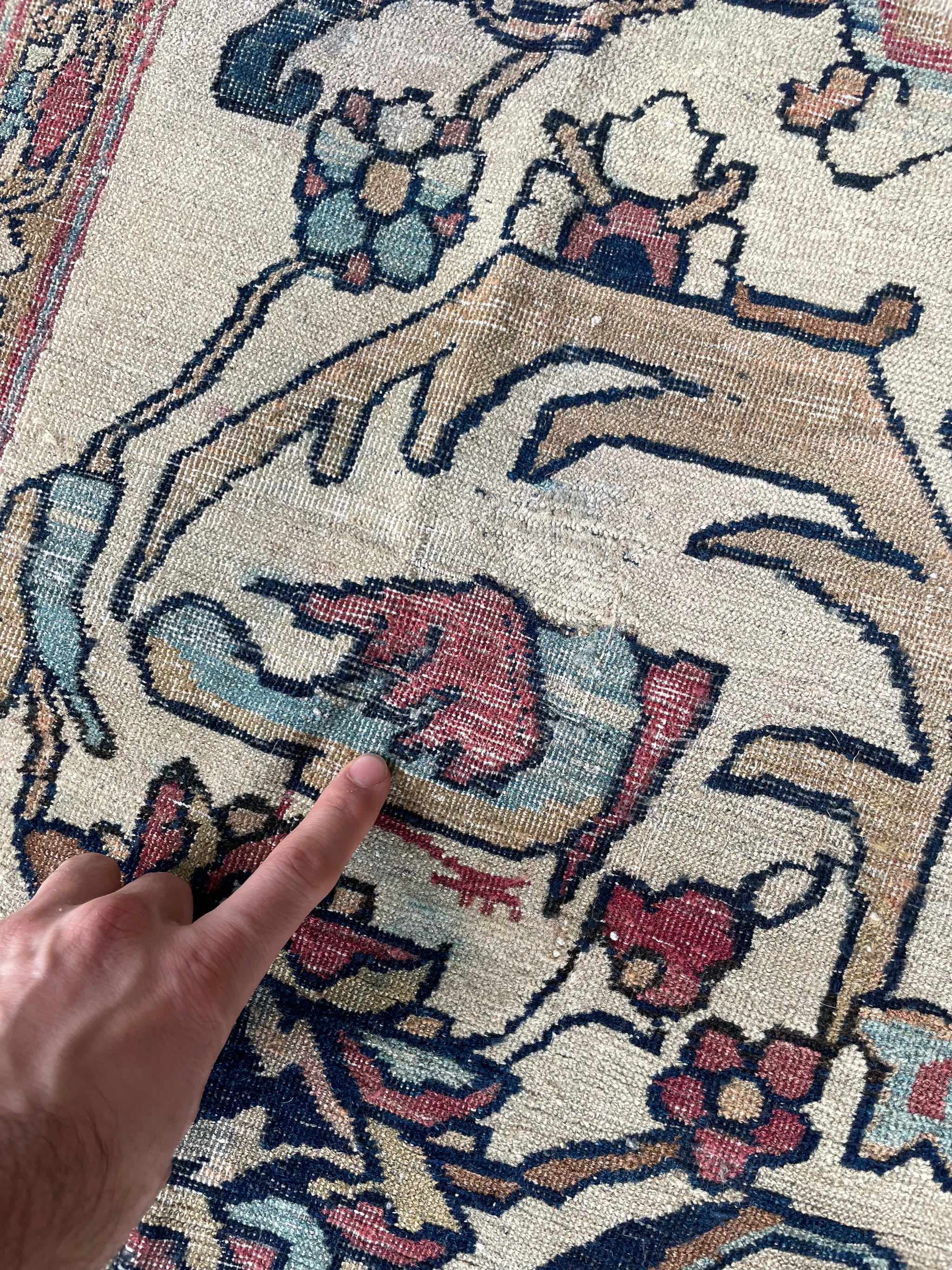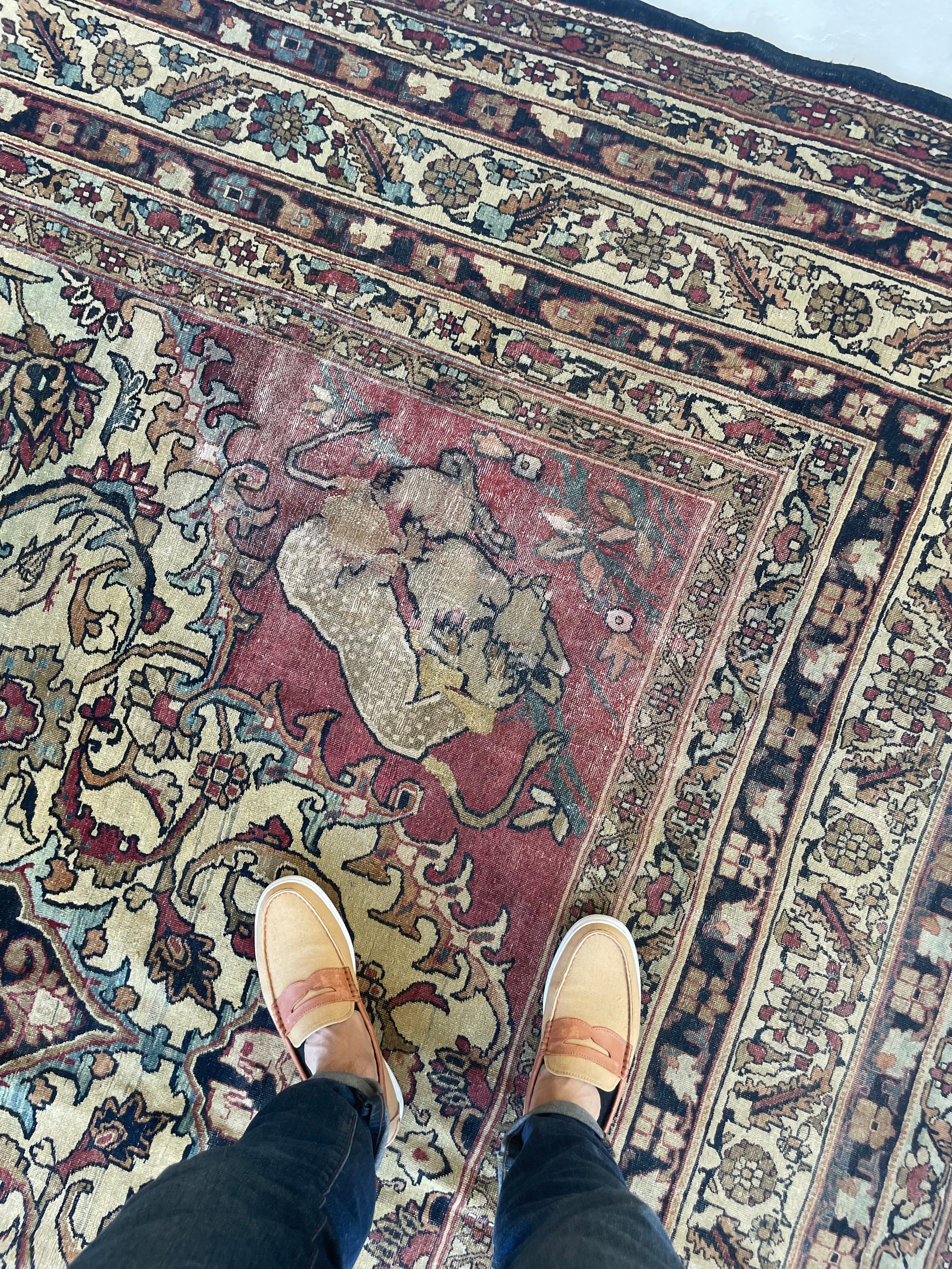"HALAL" MUSUEM PIECE | 1880's Antique Persian Kerman Lavar | "LION VS BULL" Ancient SPRING EQUINOX Mythology | 9.2 x 12.5