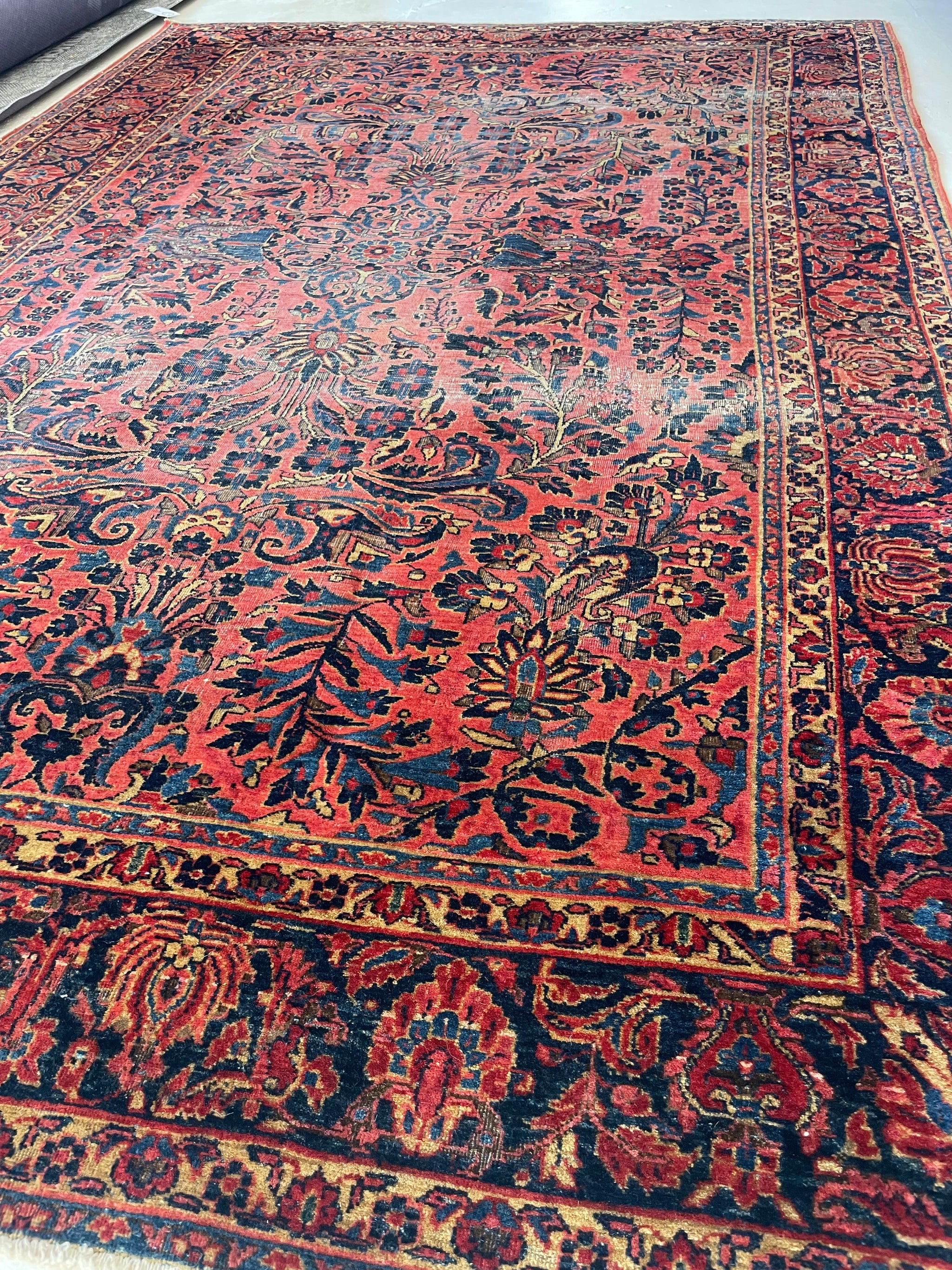 Name: MAGNIFICENT Antique Blooming Sarouk in Coral, Berry, & Blue in Rare size