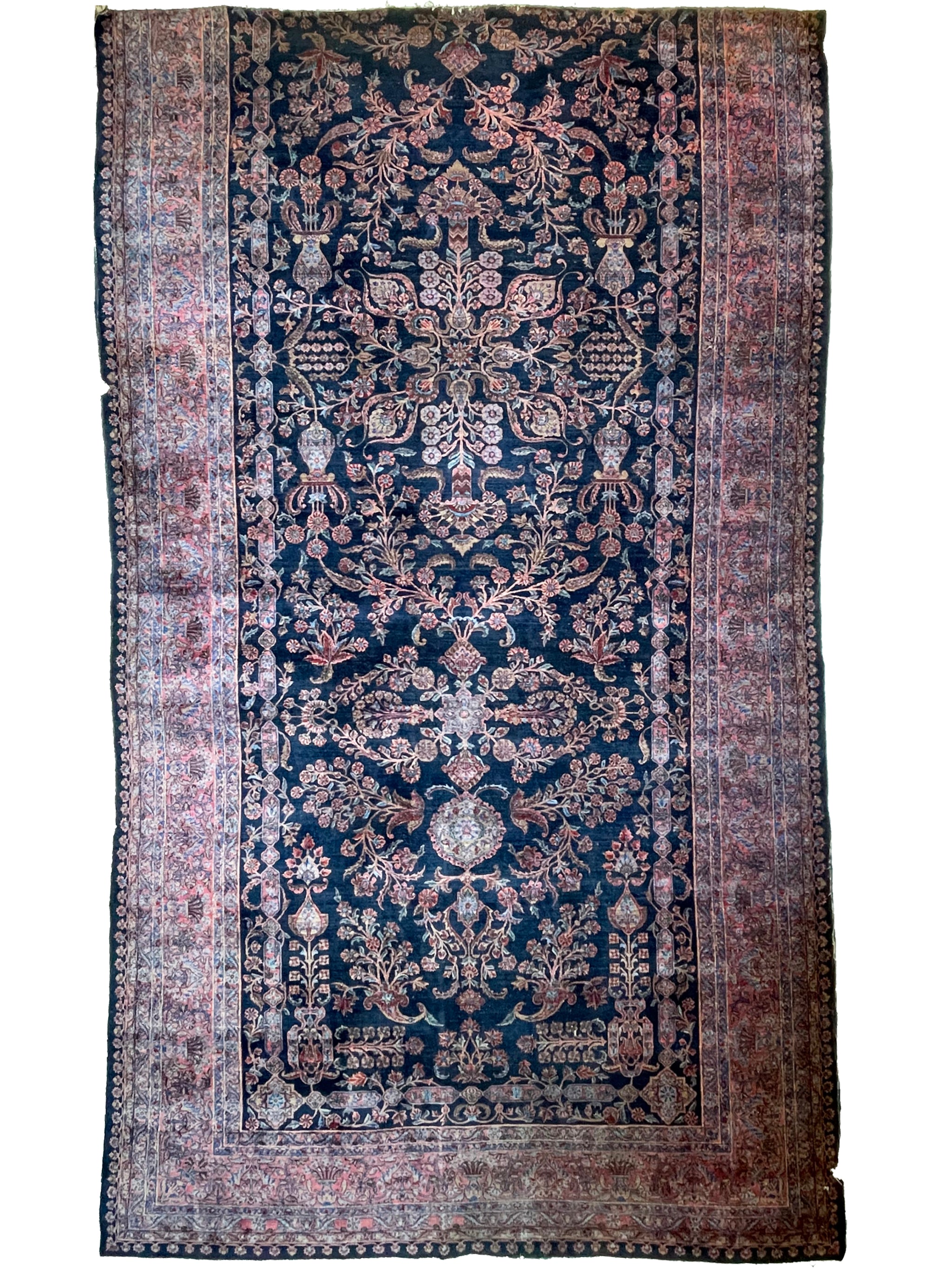 Name: MAMMOTH BALLROOM Size Antique Ralph Lauren Vibe Sarouk Yazd | Luxurious & Velvety Botanical Navy & Pink