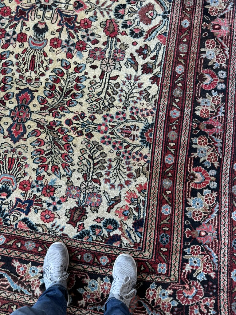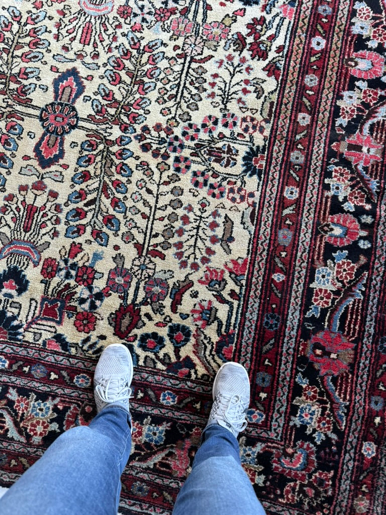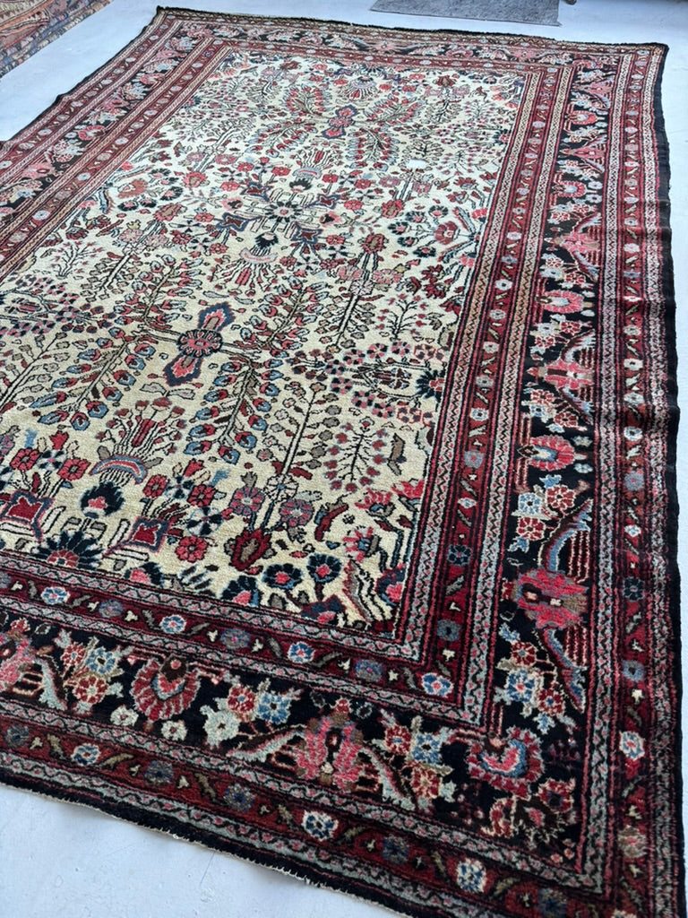 Coming Soon... NAIVE BOTANICAL BEAUTY Hamadan Sarouk with Creamy Buttery-Beige, Black, Rust & Greens | 8.8 x 12