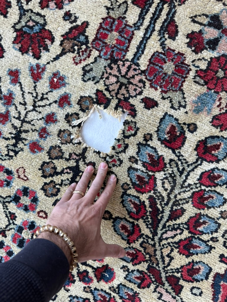 Pile: Low/Med Pile with fantastic wear and age-related patina throughout.  This piece has a small section (the size of a tennis ball) that I am having rewoven - it's going to be amazing!