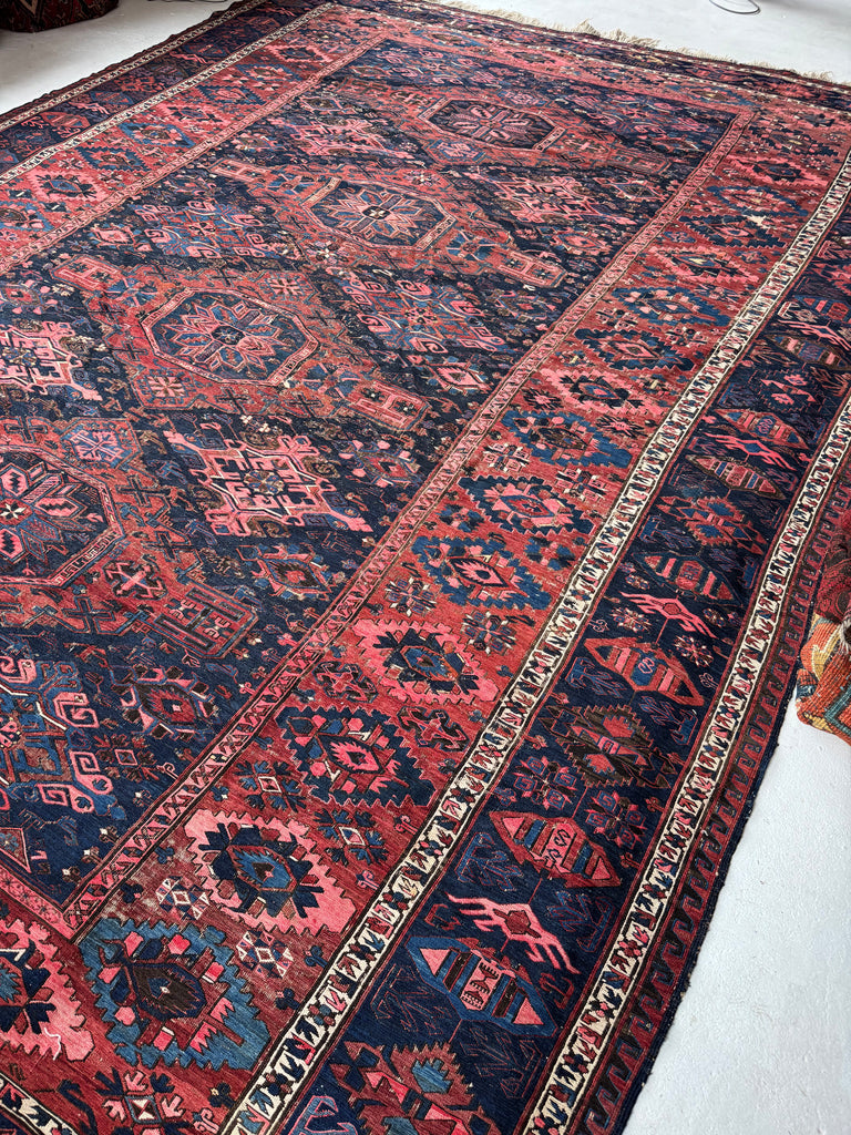 SOLD | GORGEOUS Antique Tribal Sumak / Sumac / Soumak Carpet | Navy Rust & Coral Stunning Textile | ~ 10.5 x 14