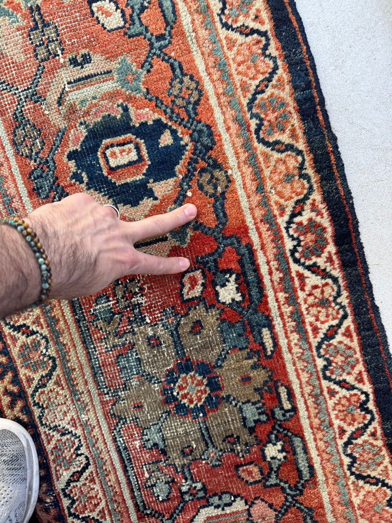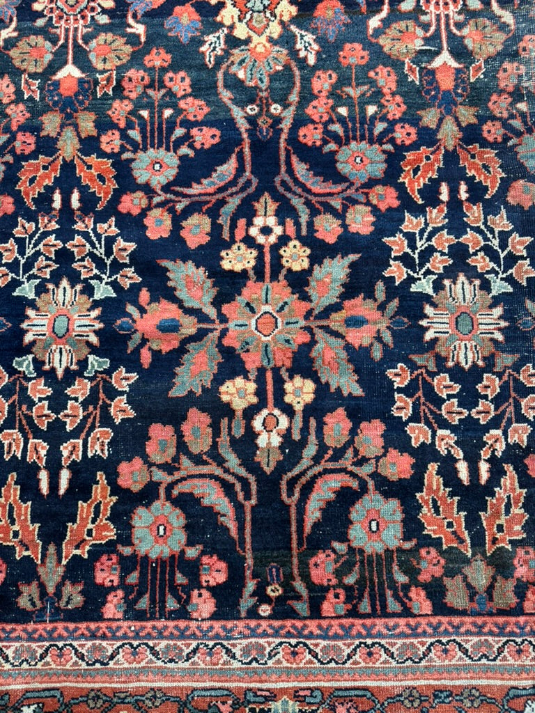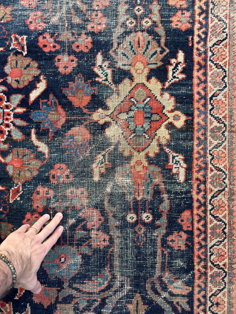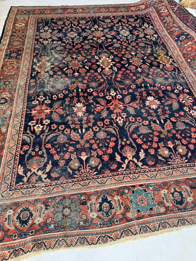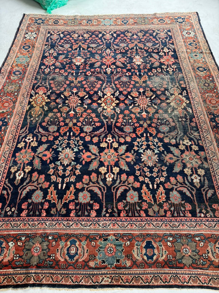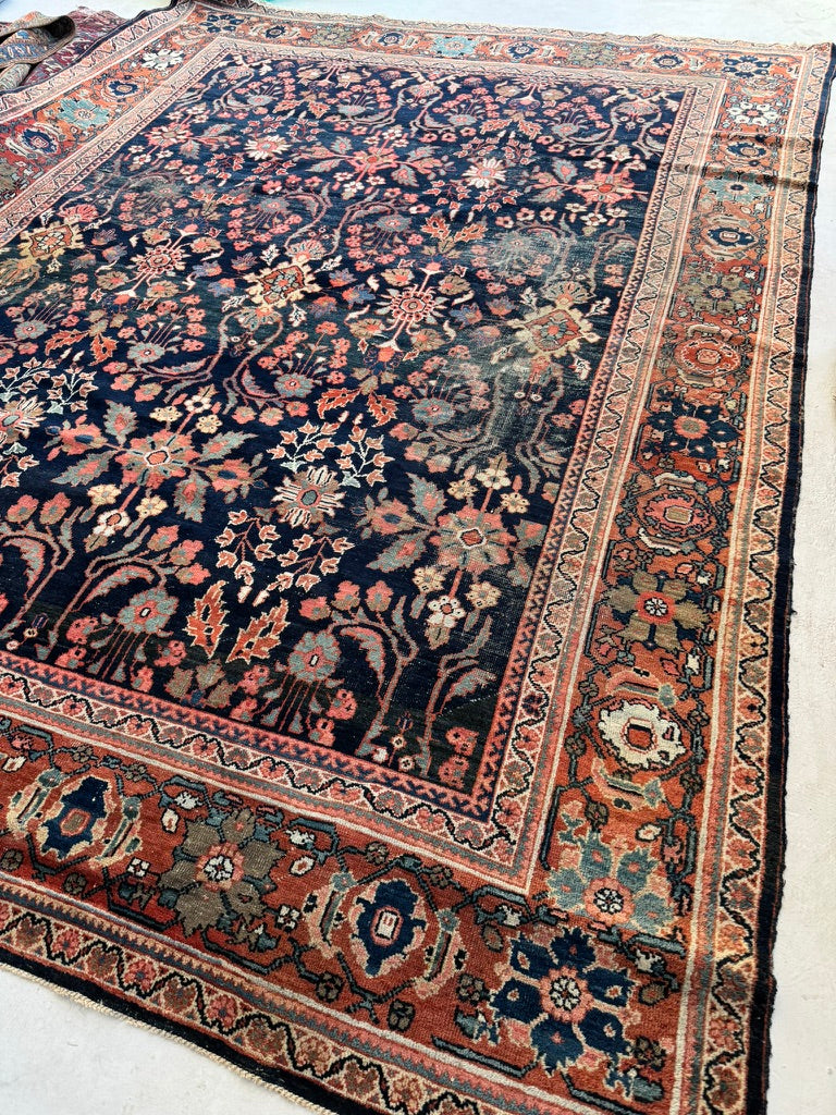 Title: MOODY Indigo & Tangerine Antique Persian Mahal | Wildly Beautiful Design