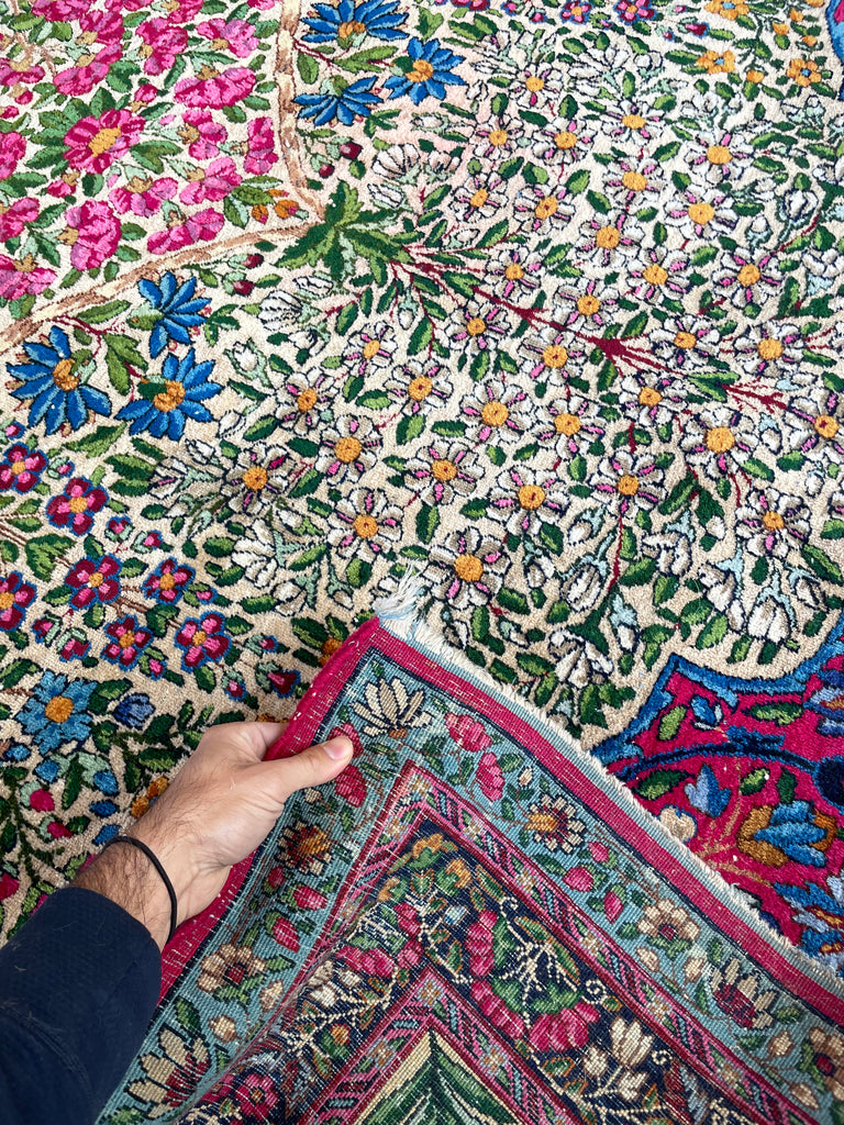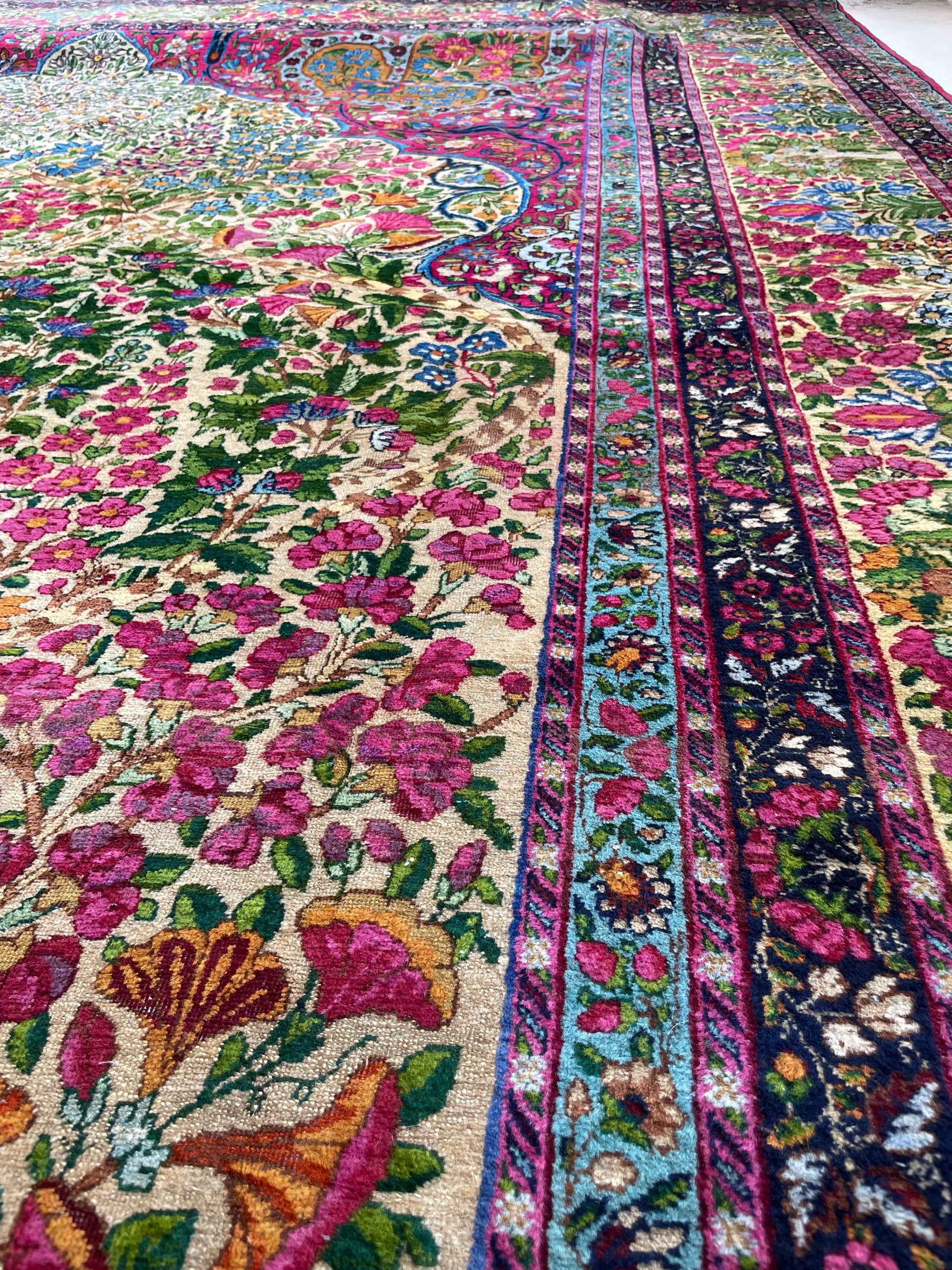 RESERVED FOR GREGORY*** SPECTACLE Antique Kerman Lavar | MILLEFLEUR & CYPRESS TREE OF LIFE | Spectrum Color Palette | 11.4 x 14.5