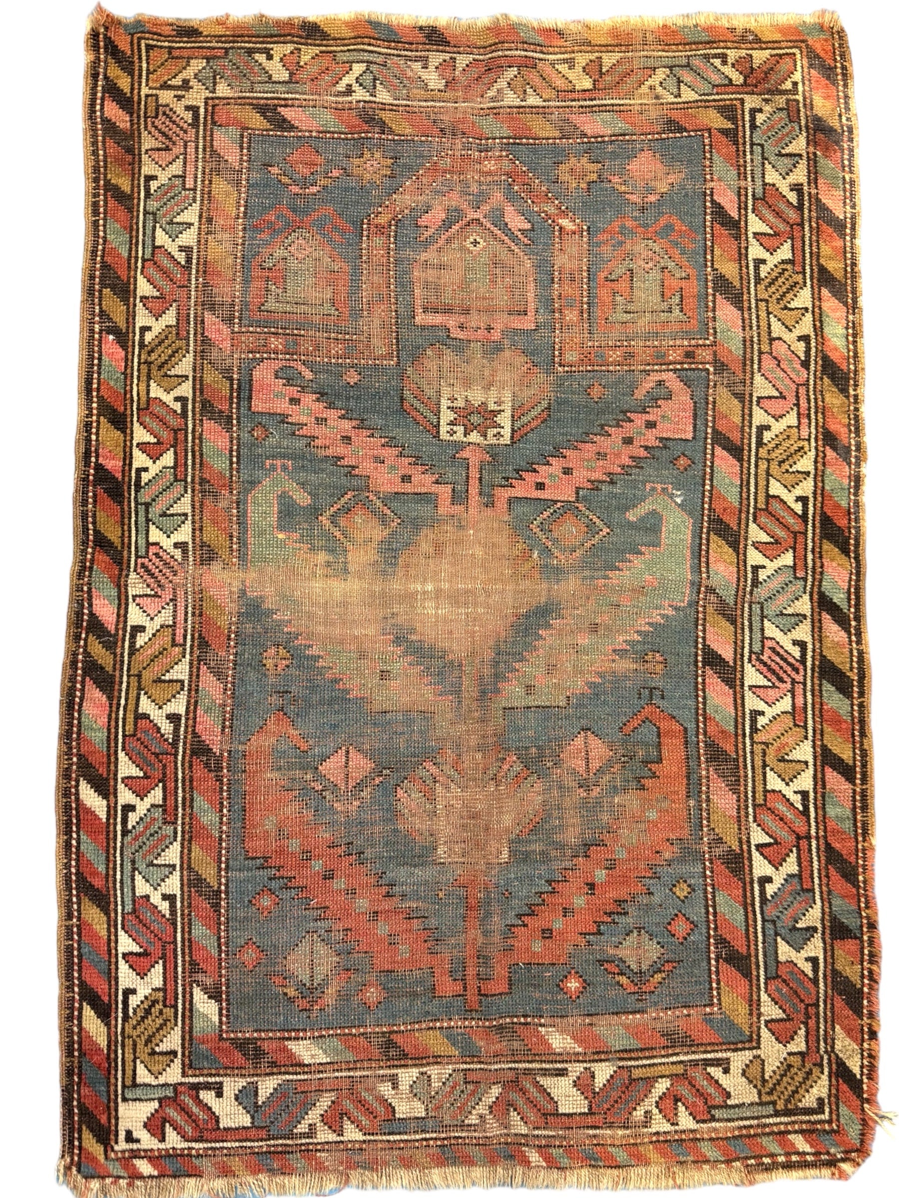 CENTURY OLD Caucasian Prayer Rug | Strikingly Beautiful Flower Design & Colors | 3 x 4.6