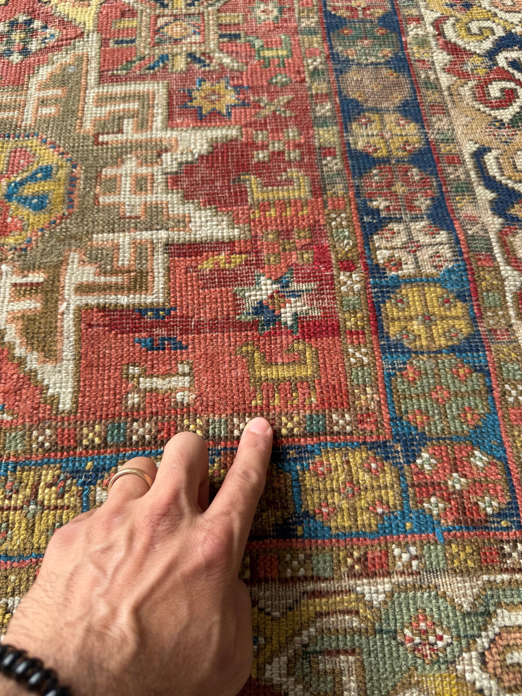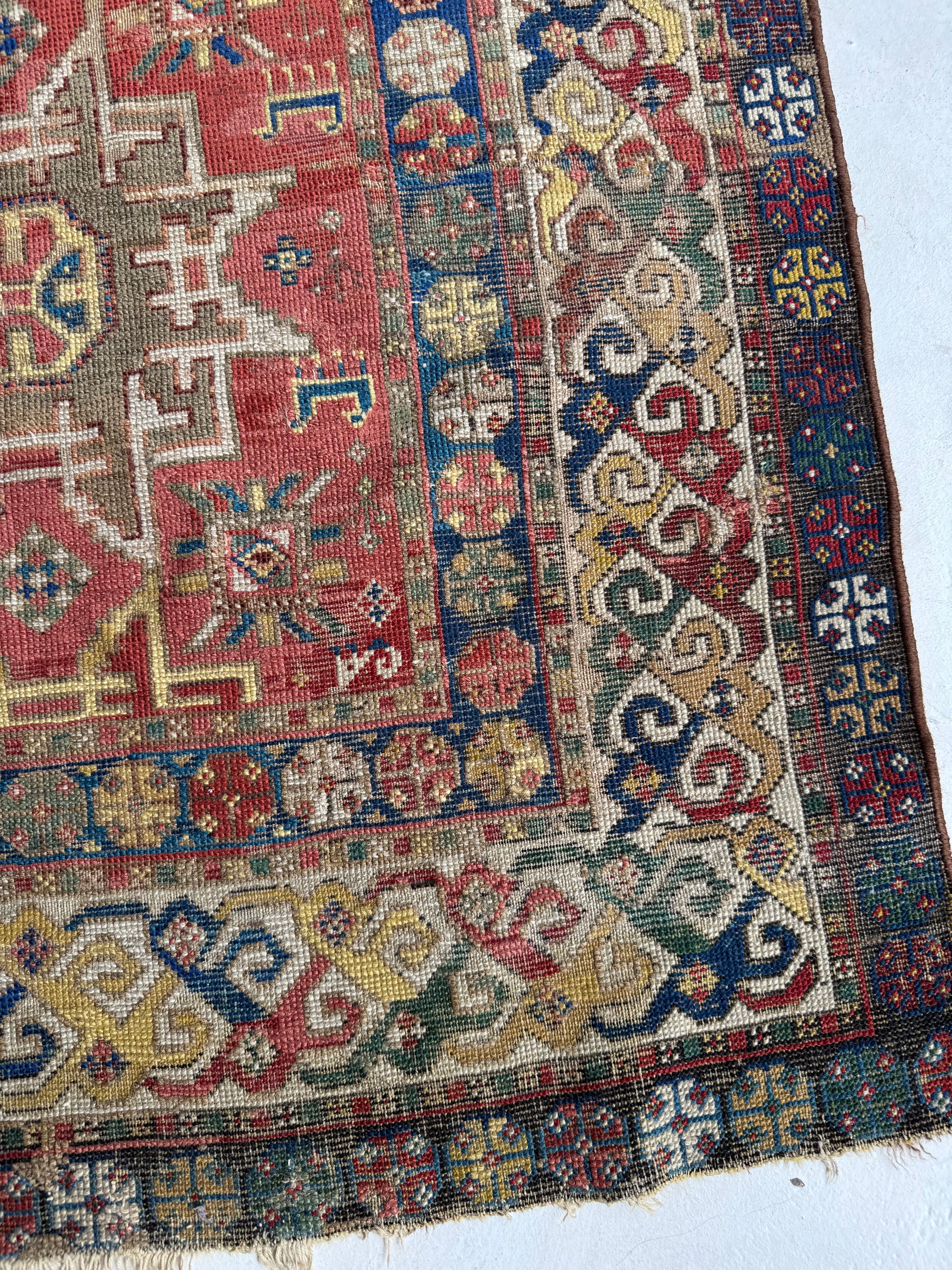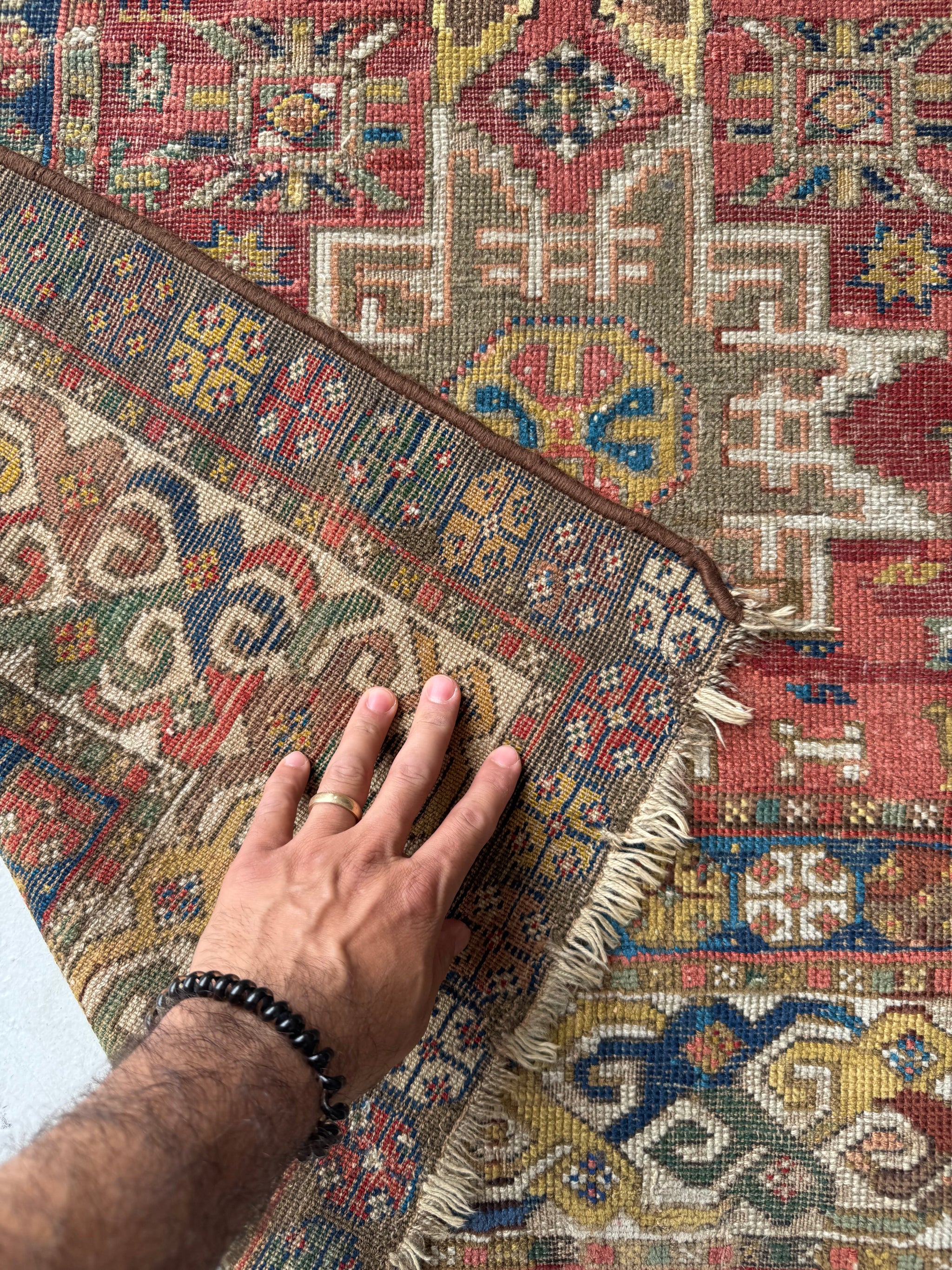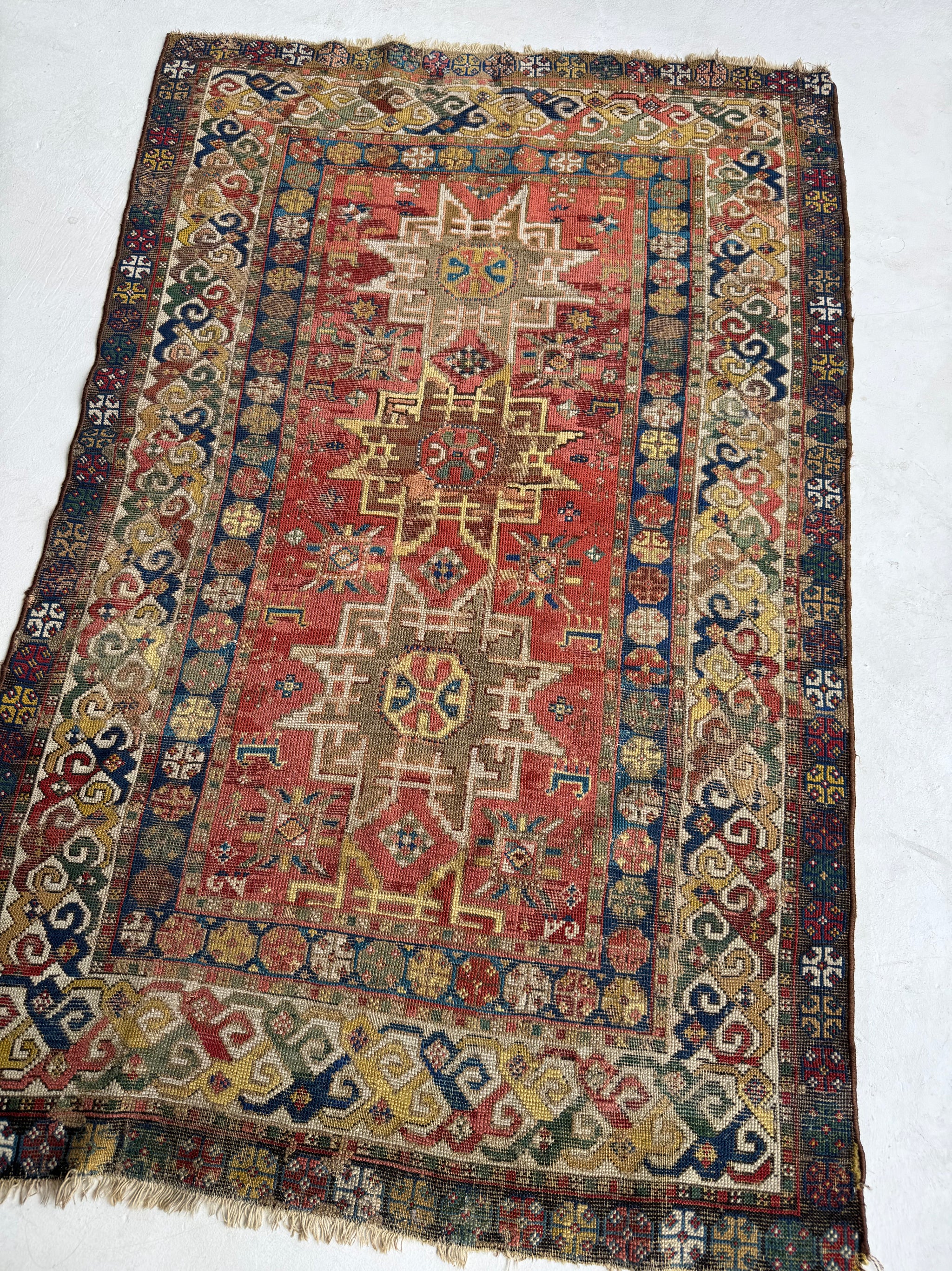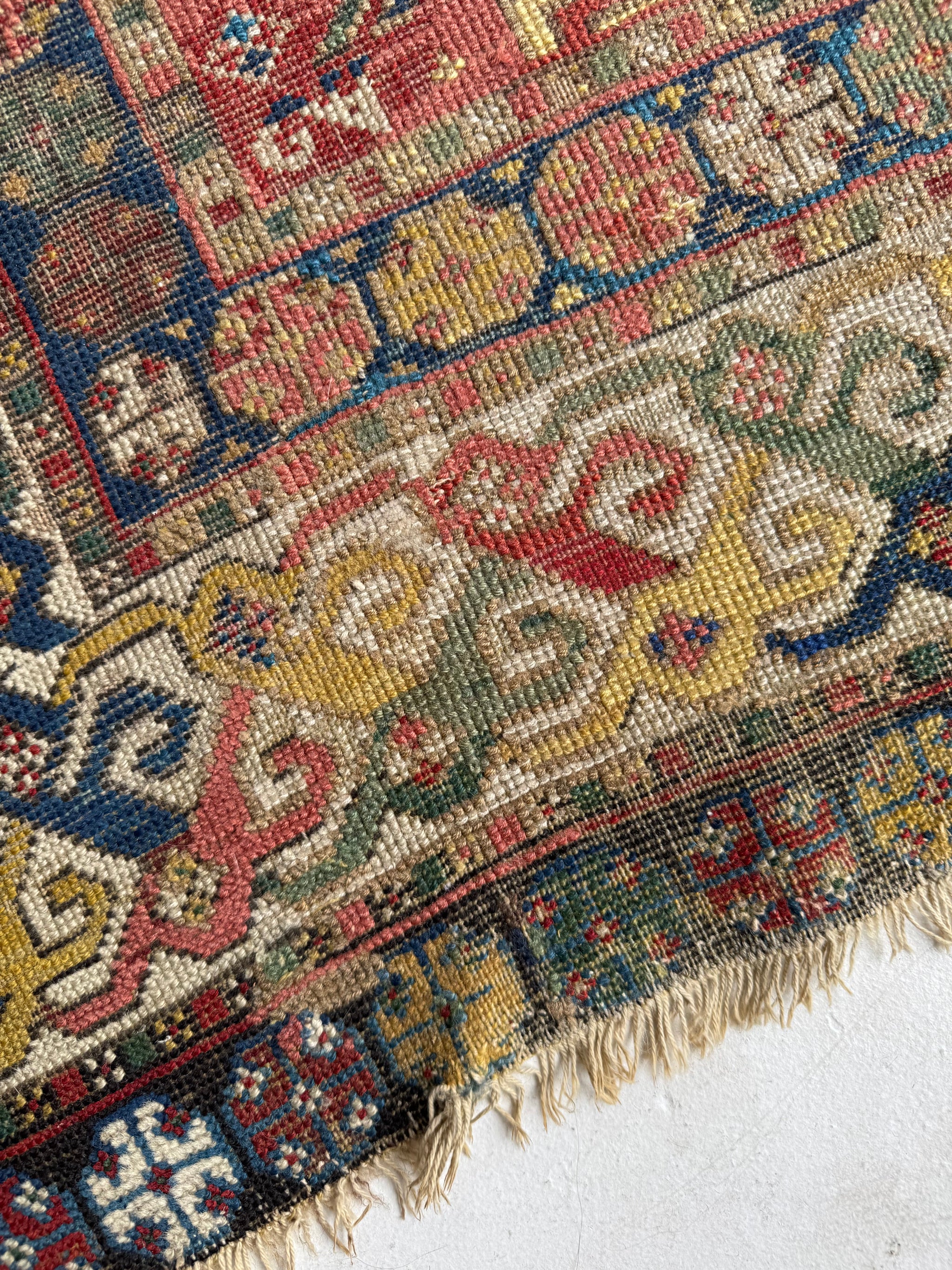 OLLLLD Antique Caucasian Leshgi Star with KINTSUGI Repairs | Lemon, Kiwi, Animals | 3.8 x 5.6
