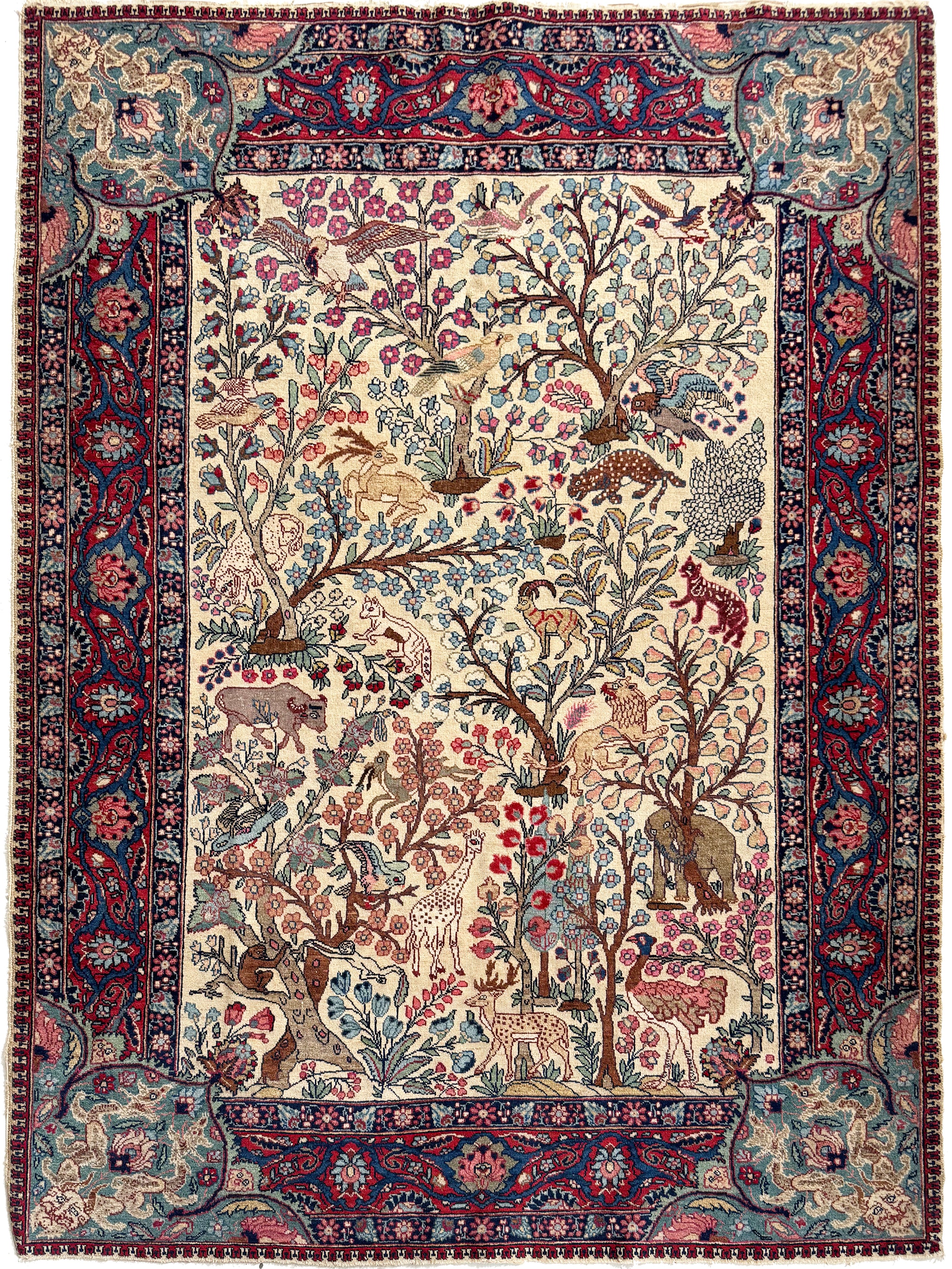 UNIVERSE IN MOTION | Antique "Paradise Scene" Tabriz, Nature and Art Collide | 4.7 x 6.4