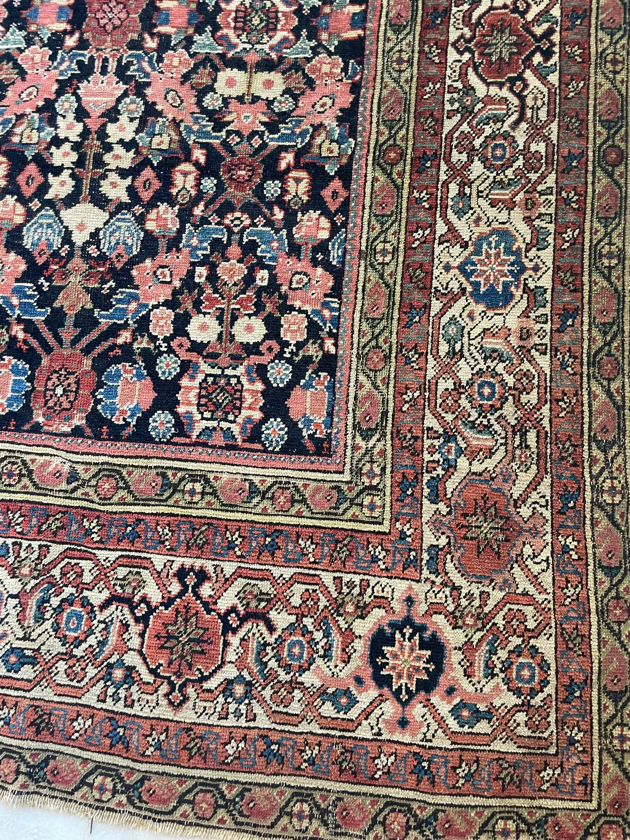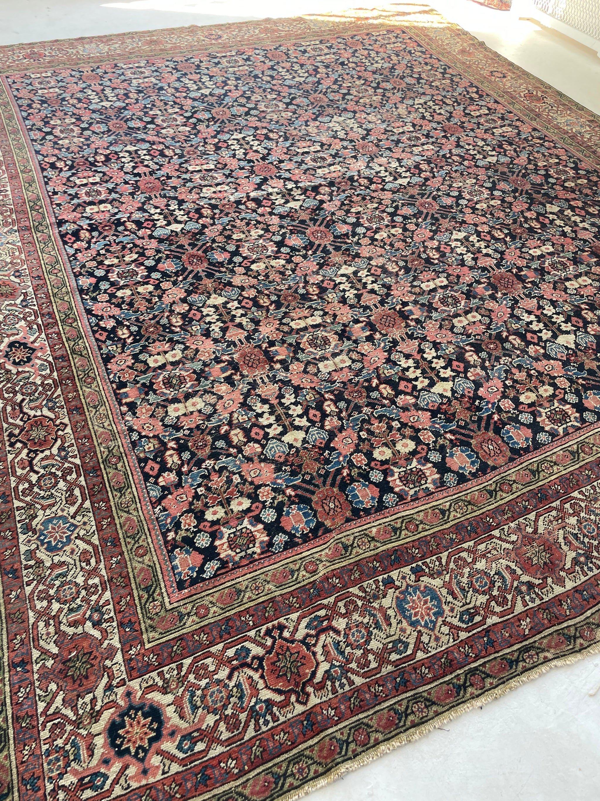 STUNNING Lattice Pattern Room-Size Antique Persian Feraghan, C. 1910-20 | Indigo, Pistachio Green, Ice Blue, Coral | 10.2 x 12.10
